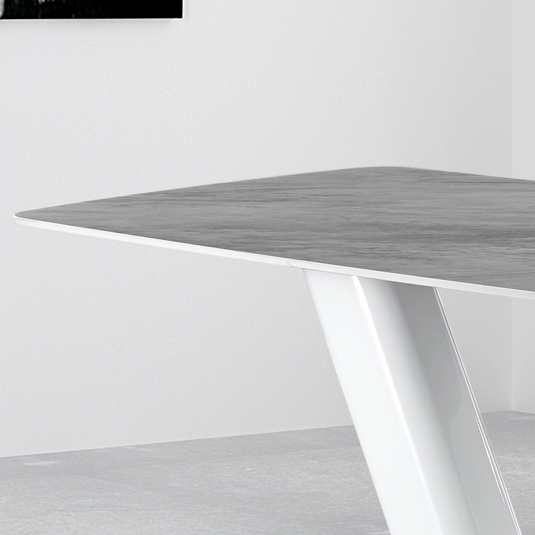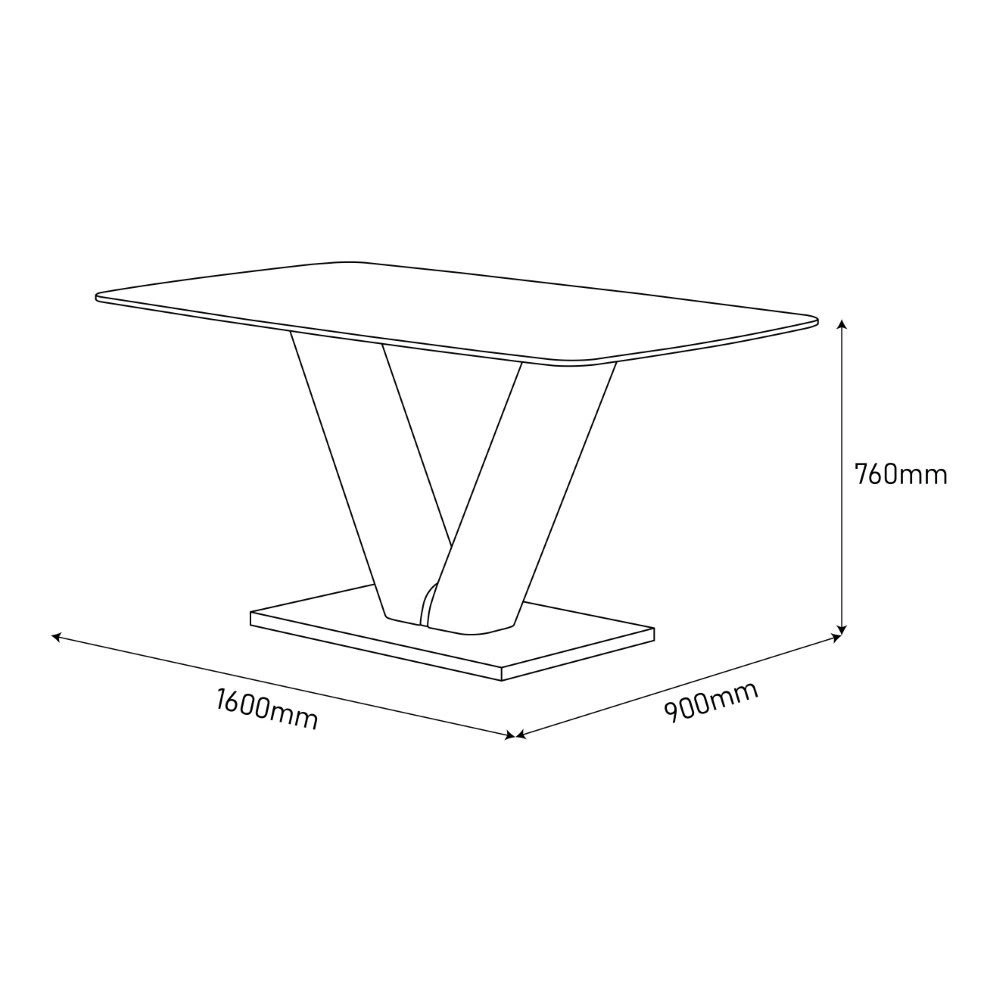 Mizna plošča pravokotne oblike z nežno zaobljenimi vogali meri 160 × 90 cm in je izdelana iz sintranega kamna v sivi barvi. Debelina plošče znaša 10,5 mm, mat površina pa daje mizi eleganten in moderen videz.