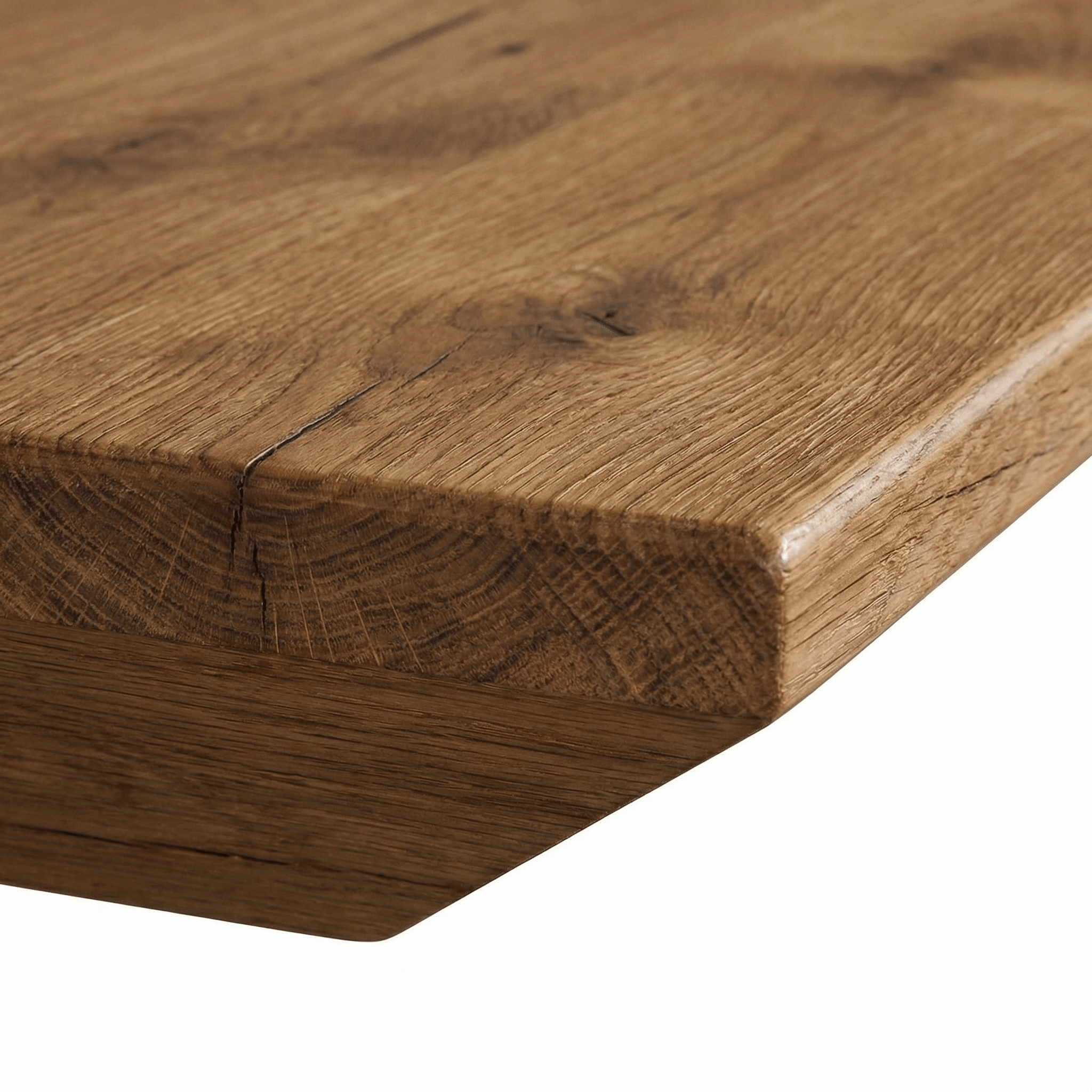 Ročno izdelana iz skrbno izbranega hrastovega lesa, miza Elena v vašo jedilnico prinese neponovljivo toplino in prestiž. Zahvaljujoč masivni plošči in izjemno stabilnemu podnožju je ta kos pohištva zasnovan kot srce vašega doma, kjer se bodo pisale družinske zgodbe več generacij.